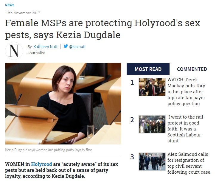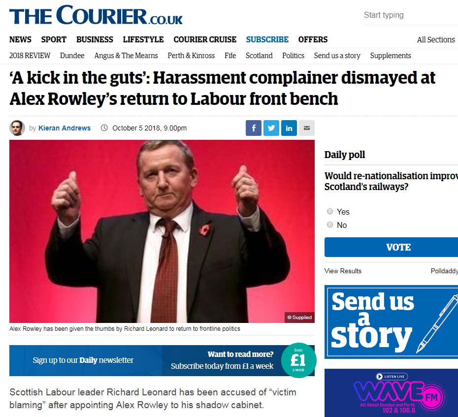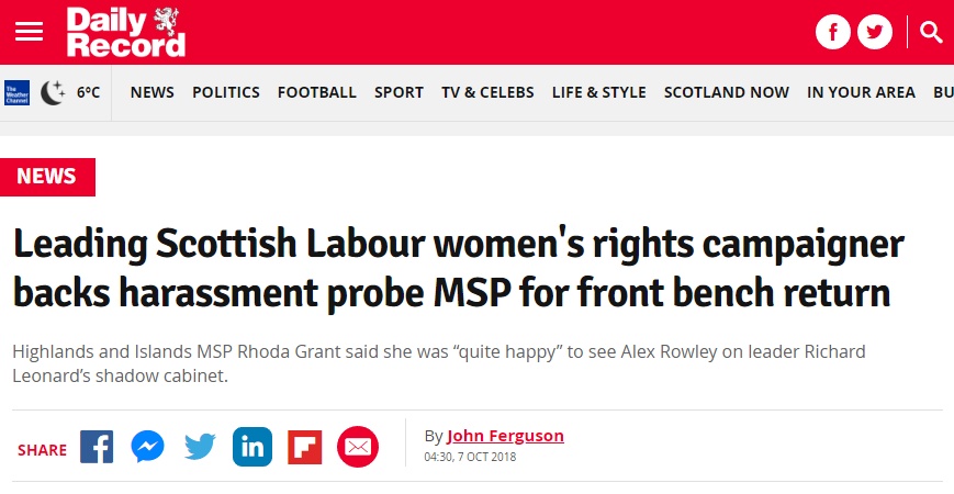 Only labour could have enough of a brass neck to stand up and without blushing and suggest that women would not be confident about coming forward due to government actions – just turn round and ask Monica Lennon – to be a good liar you need to remember previous lies – labour cannot even manage that. And then when you have done that look at the case against Rowley and several others in the labour party and how they were handled.