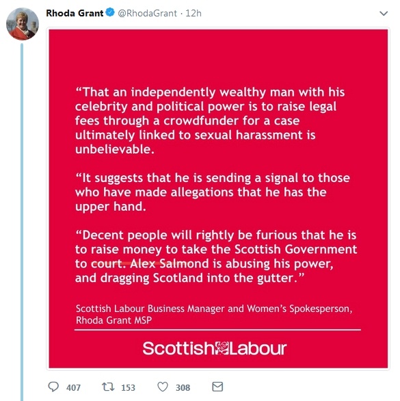 I’m proud to say I contributed to Alex crowdfunder. And am delighted it’s now going to charity. What I am fuming about is that the Scottish govt have cost us £500,000. It should never have come to that. What sort of lawyers do they employ who couldn’t see that this was a mess and unlawful?
