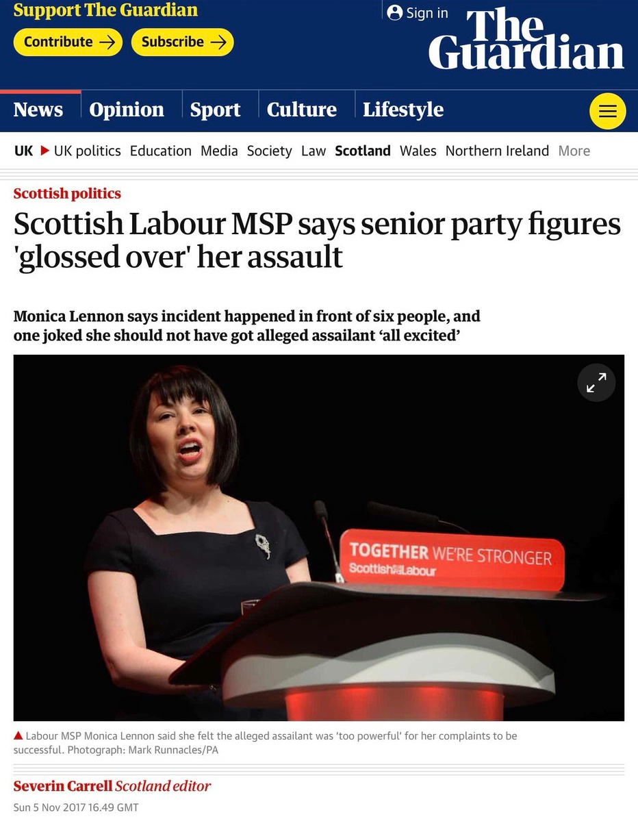 It should not stop anyone else from pointing out the hypocrisy of the Monica Lennon situation and that of Alex Rowley. The problem is they shield their secretive disciplinary procedures so can say it is dealt with.