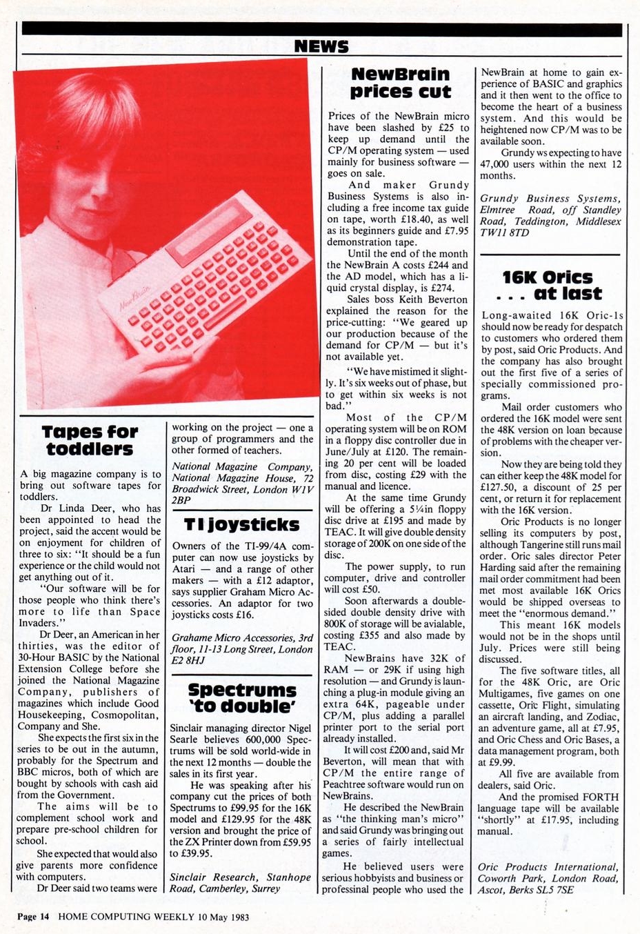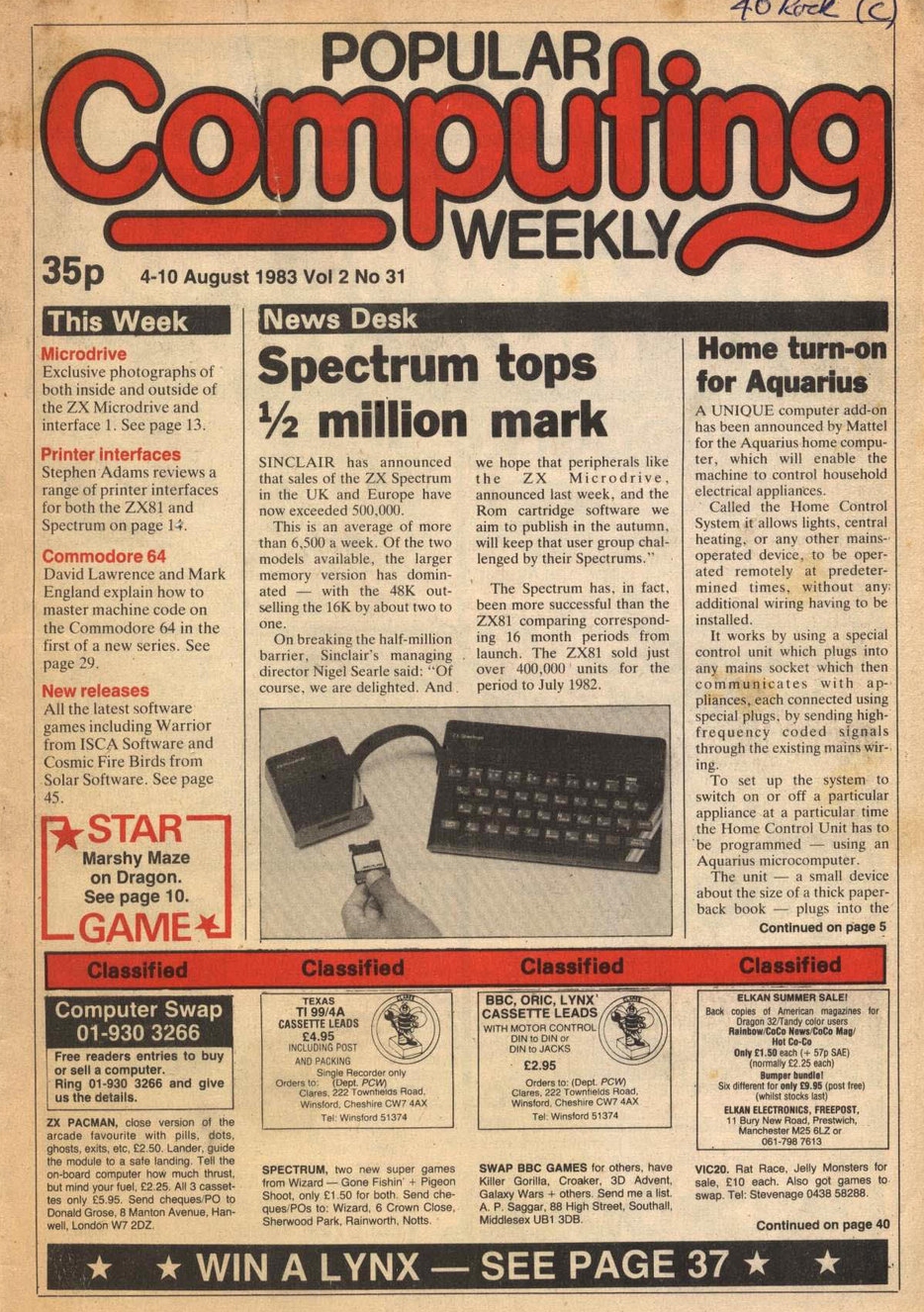 (There are no official figures for how many of the 5 million Spectrums sold were 16Ks, but Home Computing Weekly reported in May 1983 that 300,000 machines in total were sold in the first year, and in August 1983 Popular Computing Weekly reported that the 48K had outsold the 16K by two to one, so we can make a reasonable guess at somewhere between 120,000 and 150,000 units of the 16K in the year and a bit it was on sale, or roughly 3% of all Spectrums.)