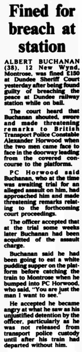 (The former champion pugilist had supposedly pummelled Watson 20 times, yet in the process hadn’t managed to inflict so much as a graze or bruise on him. Between the incident and the trial Watson had managed to get Buchanan convicted for a breach of the peace at Dundee train station by spuriously detaining him until he missed his train.)