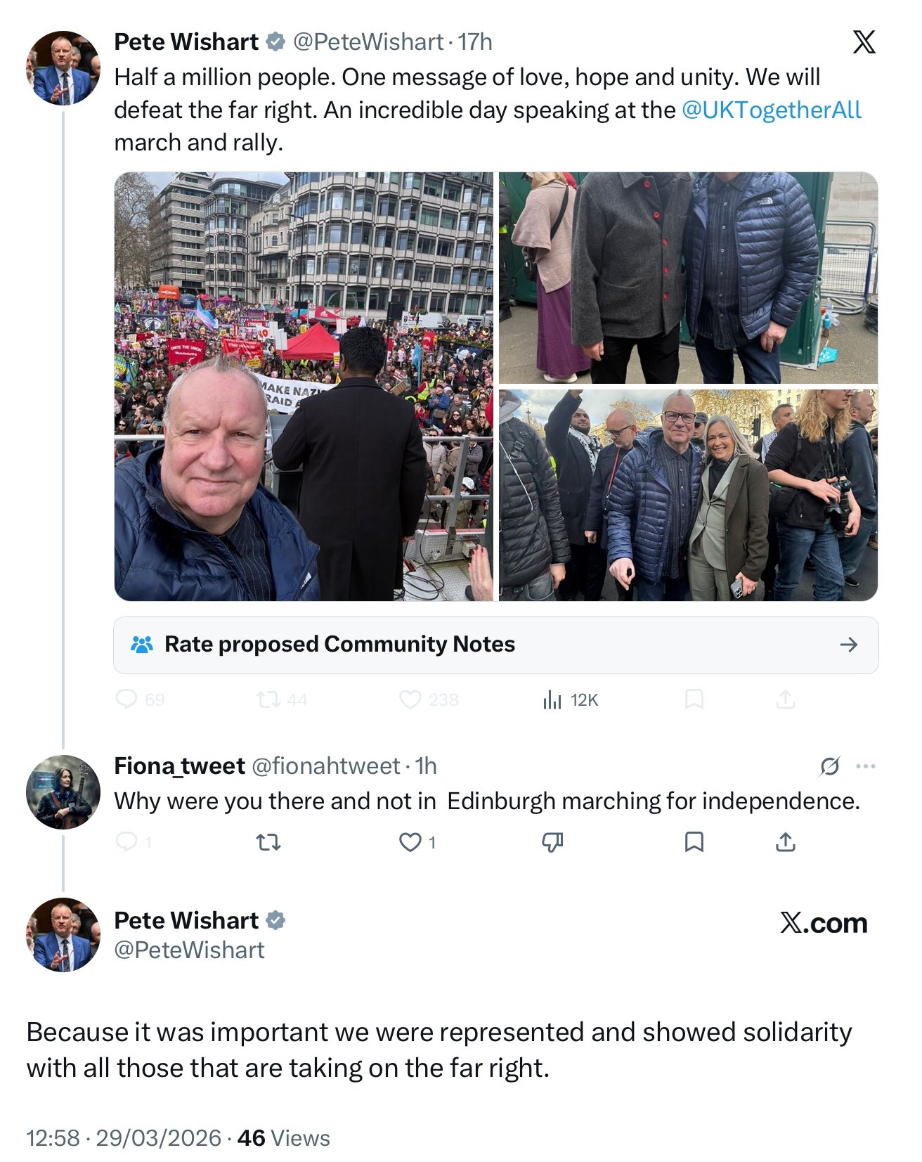 Lorncal on Protest But Don’t Survive: “The hard left, the ‘wokies’ have captured every independence party and movement in the UK, and beyond: the SNP, the…” Mar 29, 15:09