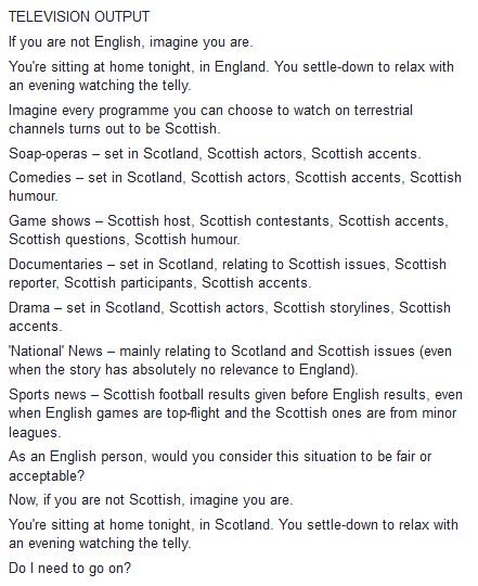 It’s like the BBC. Yes, it is reviled for its bias and BritNat agenda, but ask yourself who is actually more damaged by it? Us Independentists who recognise the lies and distortions, but then question everything and seek independent validation? Or the BritNat deadheads who lap up every myth, edict and narrative and accept it all as gospel truth? Think about it folks. They NEED their BBC. We don’t.