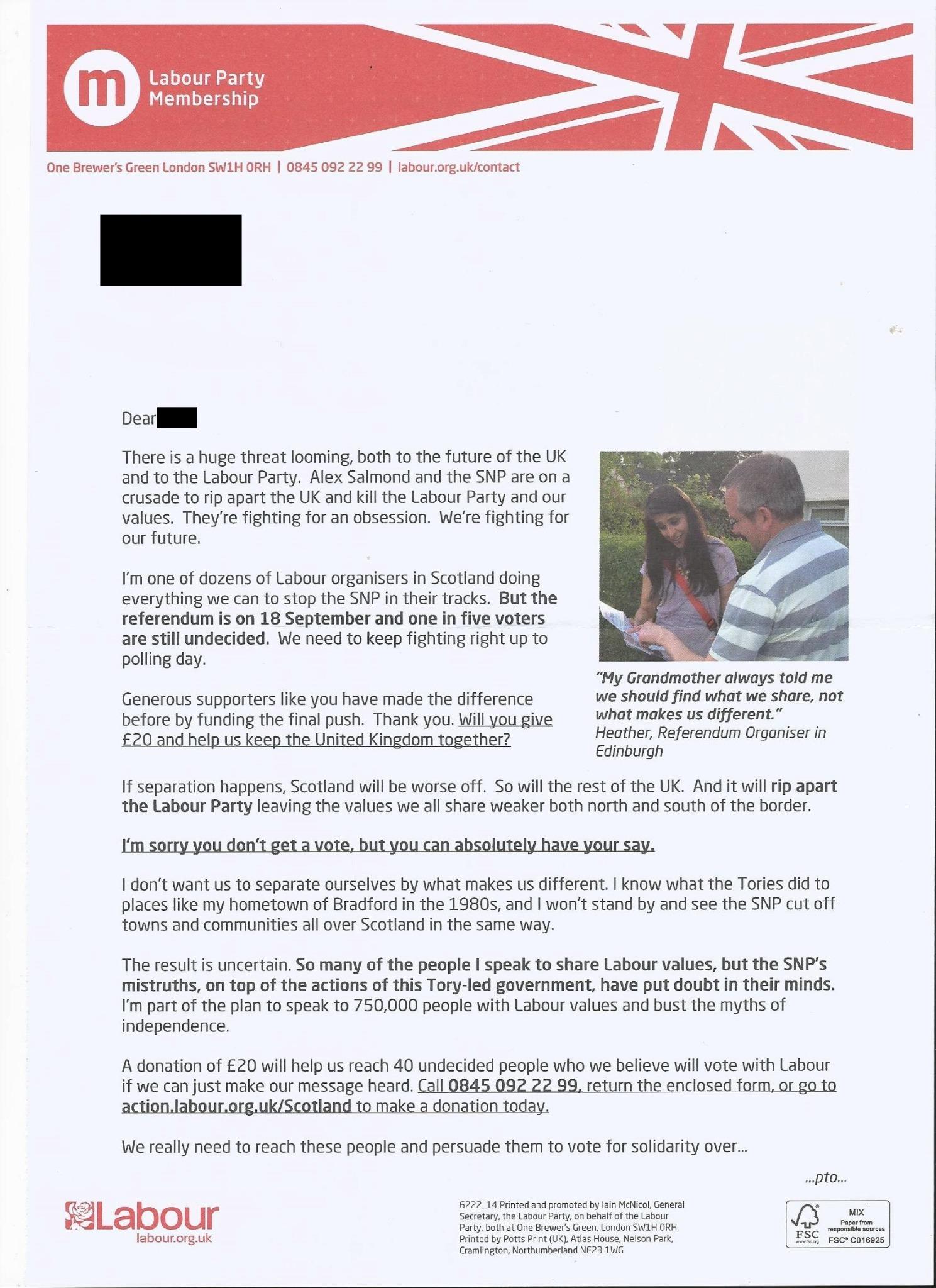 As an outsider looking in (i.e. ex-pat Yes sympathiser), I think there is a an element of truth in the Dateline skit. Based on what I’m hearing from people back in Scotland via telephone and social media, the main issue soft no’s/UDs/DKs have with voting Yes is that they “dinny like that Alex Salmond” or “Alex Salmond is a tube/pleb/idiot/dunderheid/liar”. So regardless of the substance in the arguments for Yes, they are compelled via ‘Ad Hominem’ logic to ignore it and vote No by default. I believe this is something the No camp (i.e. MSM + WM + BT) are now increasingly latching onto and will do so with even more ferocity for the remainder of the run-in. I wouldn’t be surprised to see more of AS on your TV screens – being openly ridiculed of course – for the next month. Now – I’m certain that the same No camp are monitoring social media. How else could you explain that after foodbanks are discussed by the Yes side for a few days on social media, it’s suddenly brought up and re-spun by the No camp a day or two later when CU seemed to be the most important thing to them just prior? So, assuming I’m correct (though tell me if I’m paranoid please) – it seems that the sensible thing for us all to do now, IMHO, is (via the same social media) to call out the Alex Salmond obsession for what it is; a creepy, borderline-voyeuristic fixation with a single person who doesn’t actually represent this movement. The best way to fight ridiculous statements and assertions is via ridicule and satire. At the same time, there needs to be a concerted effort on social media to reinforce that this is not a popularity contest and that Alex Salmond’s name will NOT appear on the voting paper (perhaps a meme with two mock voting papers side-by-side – one representing how BT wants you to perceive the voting paper, and the other showing what the voting paper will ACTUALLY look like). As an IT professional, I’d be happy to do this myself, but I often get told to keep my nose out (by the No people almost exclusively, but I don’t want to p1ss off anyone here).