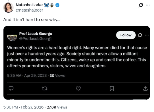 robertkknight on Two Men Unalike: “We’re through the looking glass here people, what was “normal” is now subject to attack by social anarchists and trans-zealots.…” Feb 28, 15:20